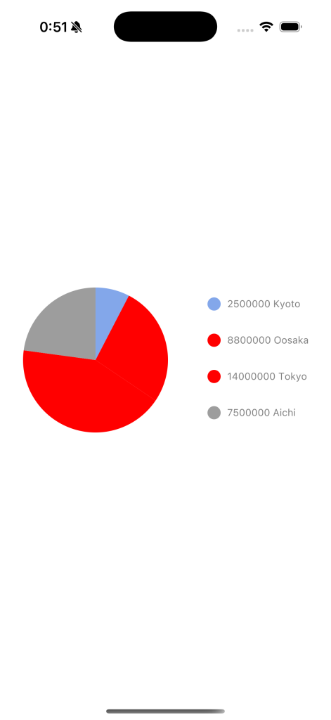 PiChartというコンポーネントにデータを渡すだけで簡単に円グラフの作成が可能です。